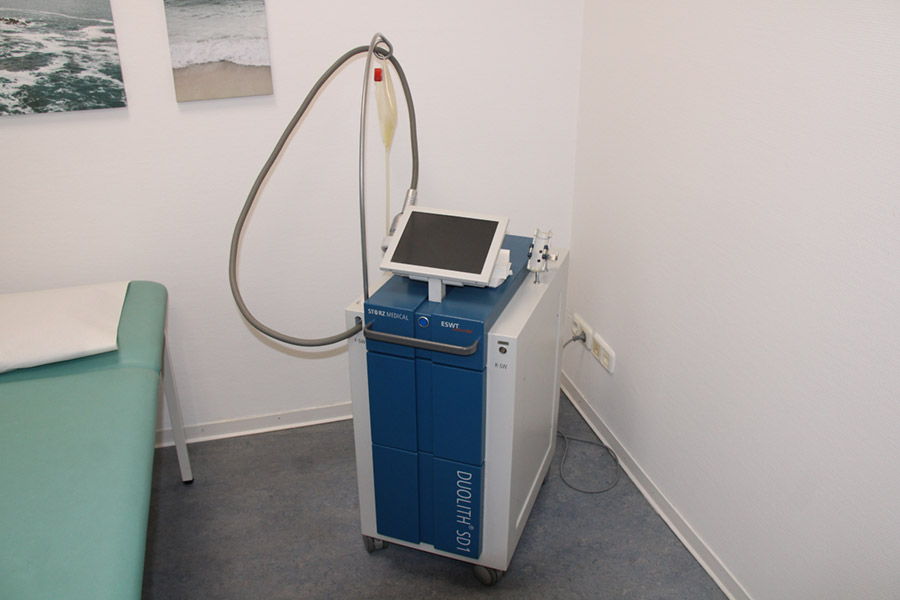 Im Rahmen der Stoßwellentherapie werden Schallwellen punktgenau auf das schmerzende Gebiet gerichtet.